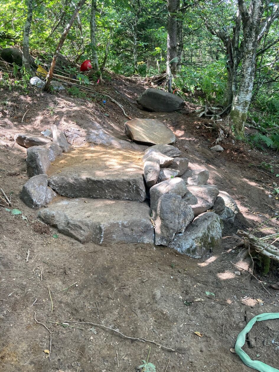 The Long Trail Patrol did a terrific relocation going north from Bromley ski area as you go down into the col, with switchbacks and small staircases.